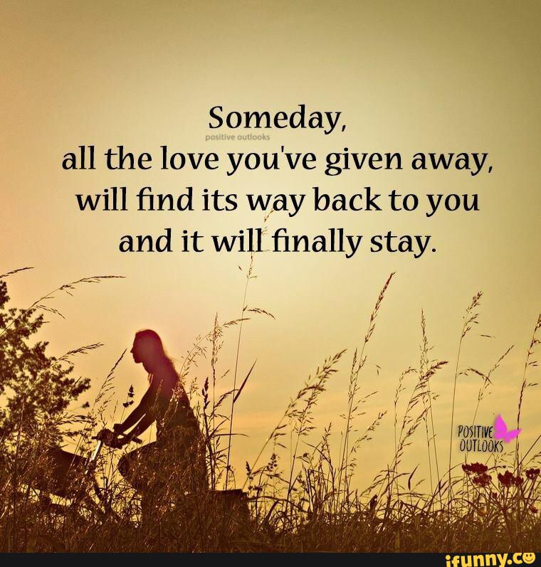 Someday all the love you've given away. Sakurasdfghjkl liked this. C60458 Black Someday All The Love Youve Given Away Will Come Back to You and it Will Finally Stay. I am patiently waiting and searching for a man that could love me and accepts and love my daughter above all.